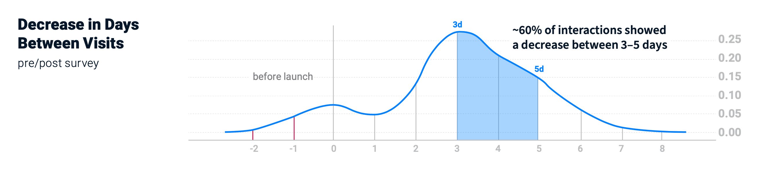 Aktana decreased time between visits to provide a more continuous experience for reps and HCPs alike. For approximately 60% of interactions, time between visits shrunk by 3-5 days