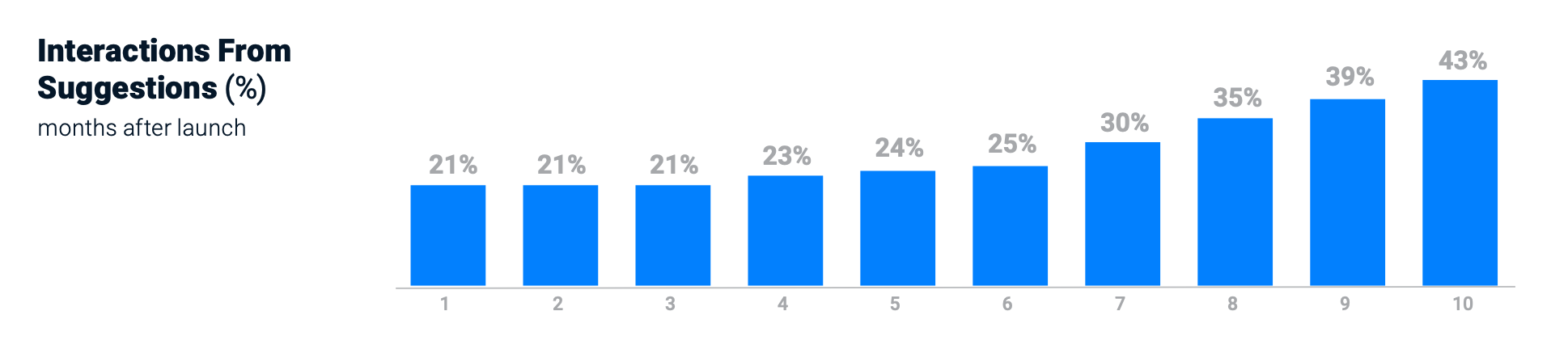 Reps increasingly liked, trusted and used suggestions as time went on. Over a 10-month period, suggestion adoption grew from 21% to 43%.